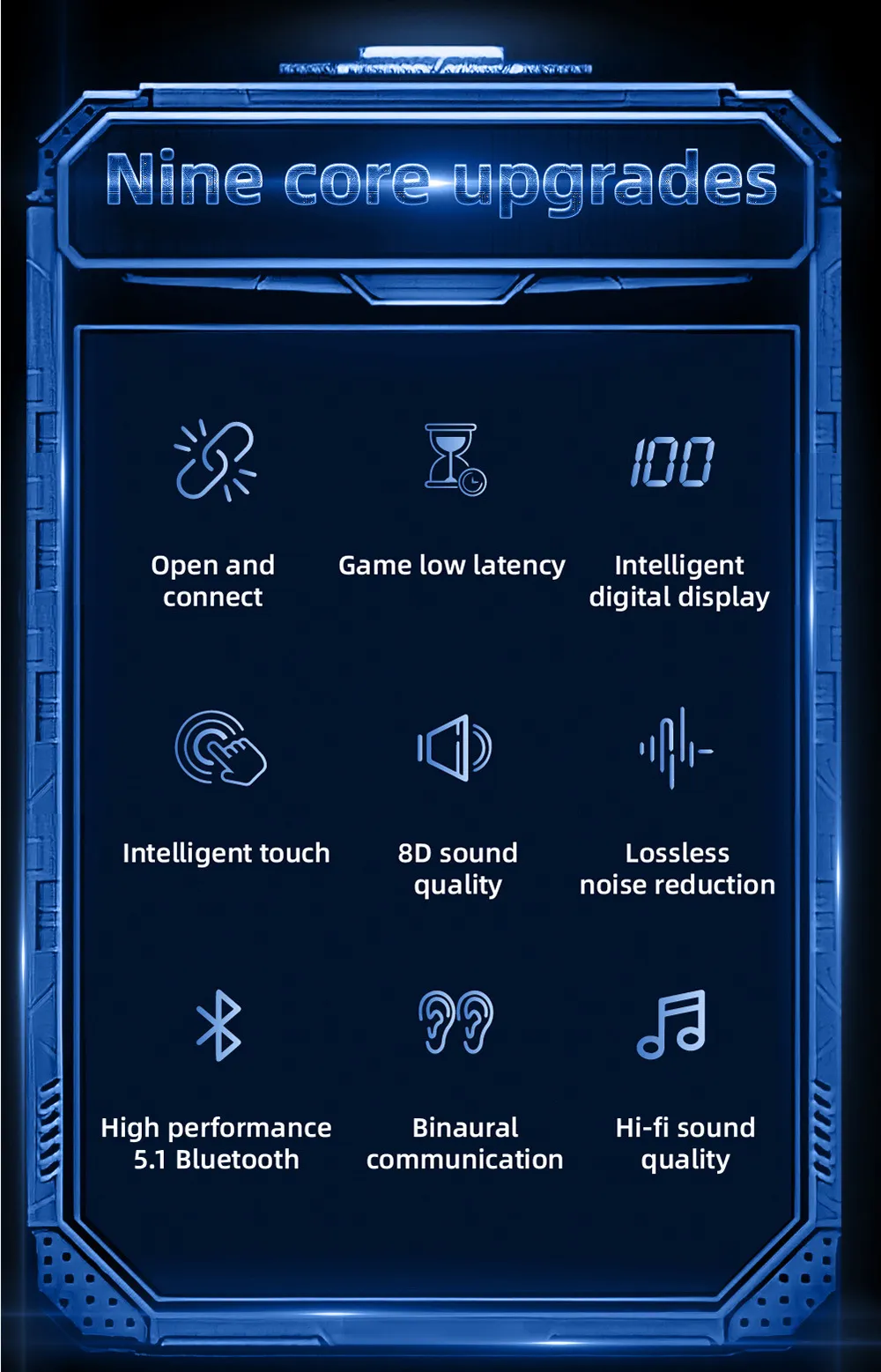 True wireless, binaural call 2. Digital battery display, 3, touch function 4. True copper ring speaker sound quality