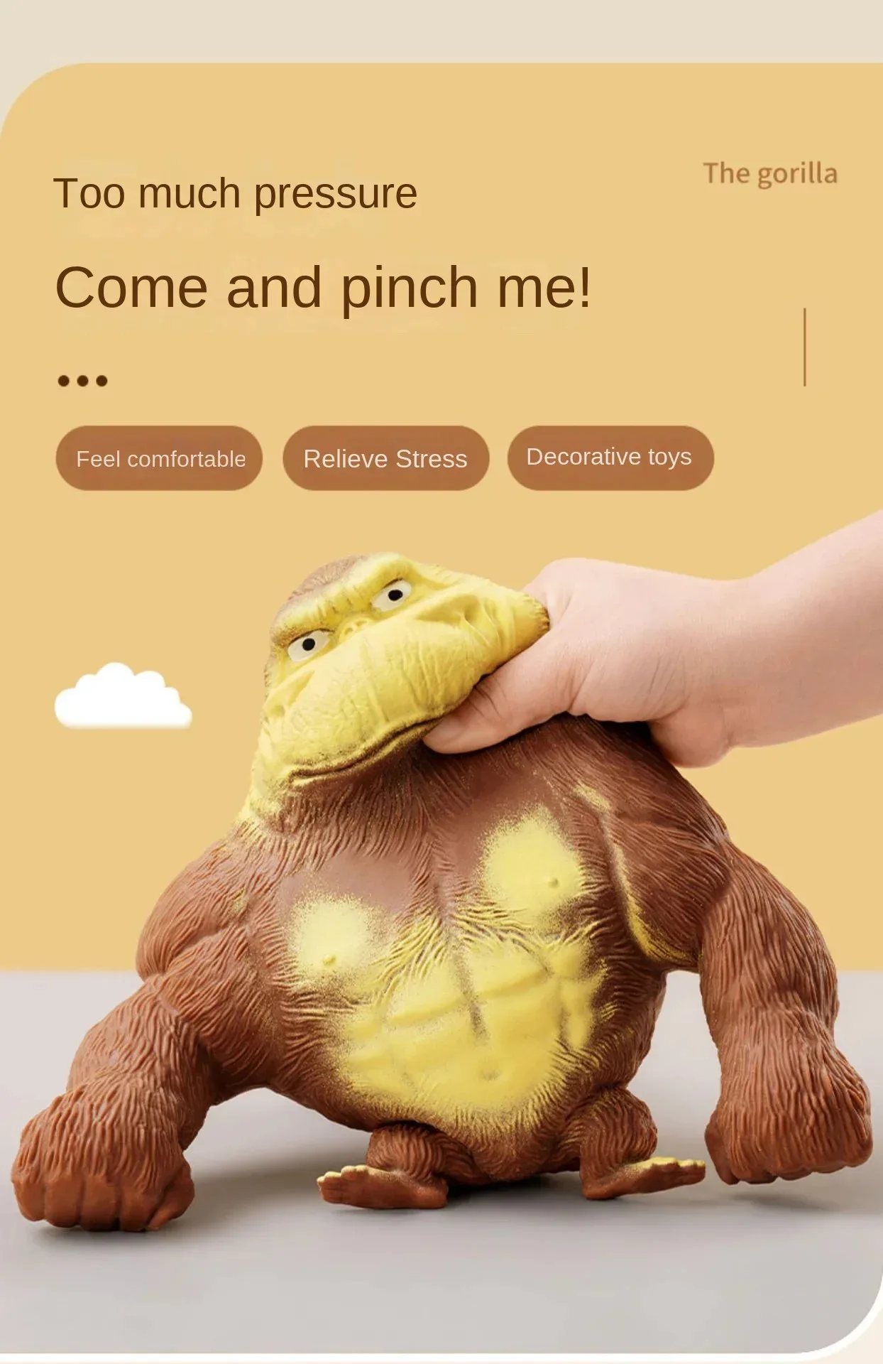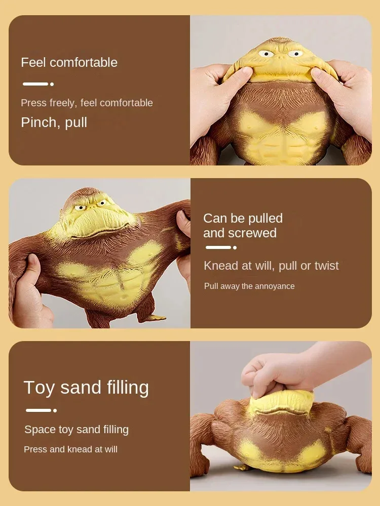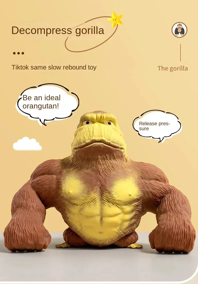 Made from soft, squishy material, this decompression gorilla toy can be squeezed, stretched, and squished to your heart's content, offering a tactile experience that helps improve focus, concentration, and relaxation. Whether you’re looking for a stress relief game for your desk or a fun toy for kids, this elastic monkey is a perfect addition to your collection.