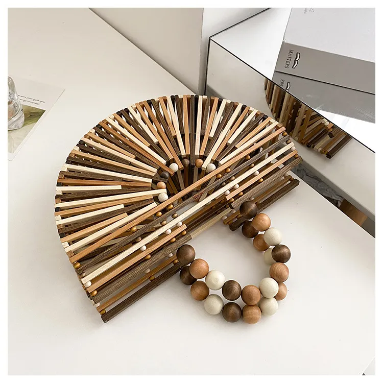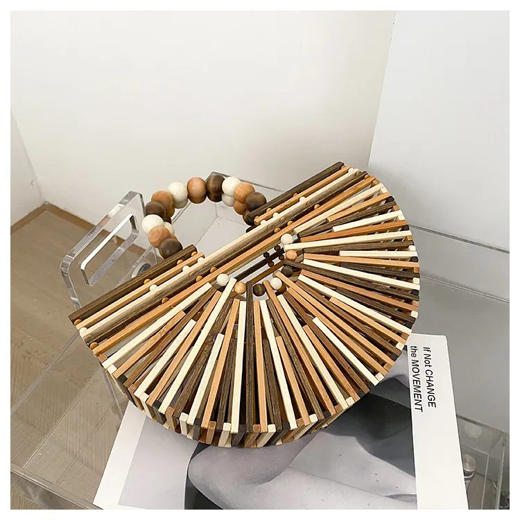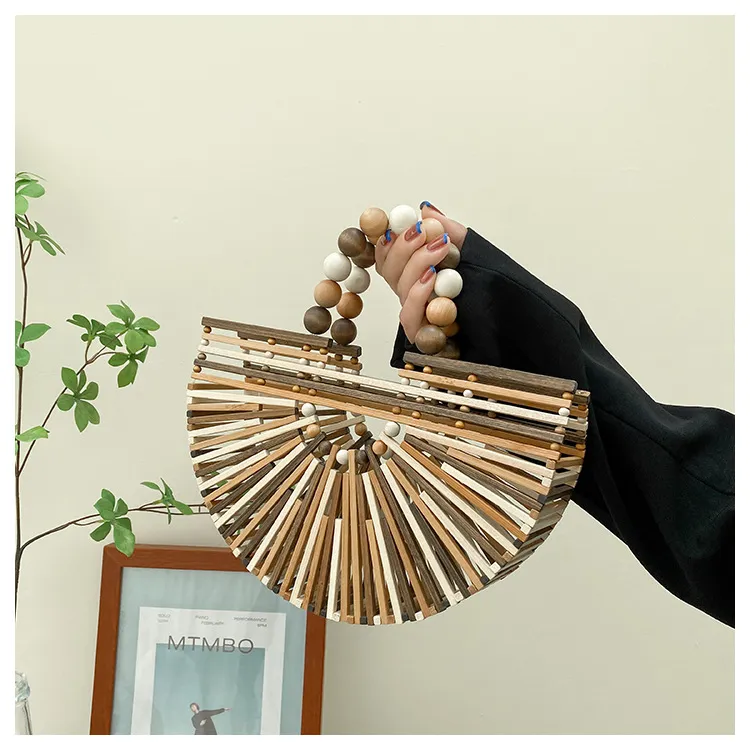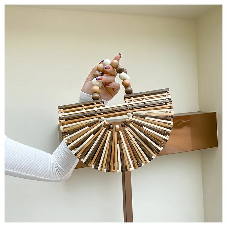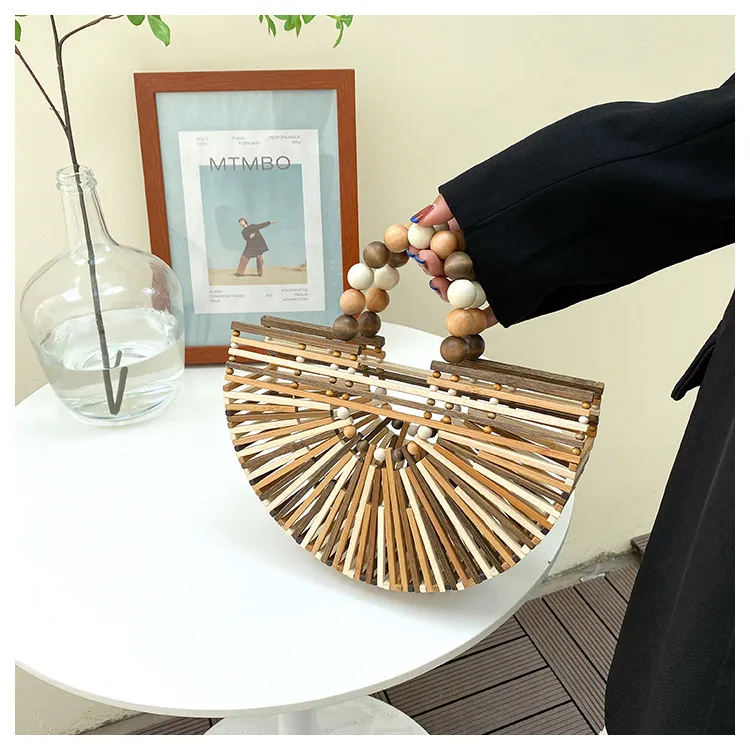 New Bamboo Woven Bag Women's Beaded Portable