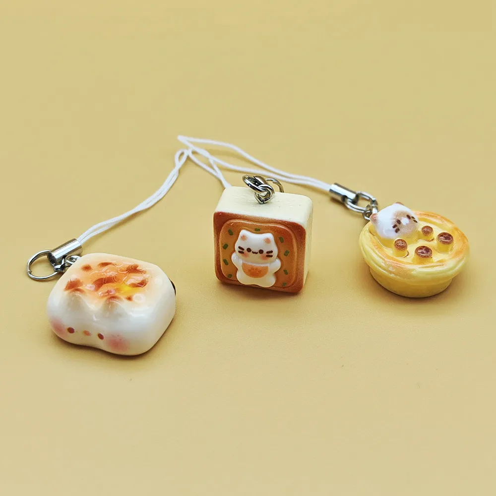 New Cute Kitten Egg Tart Simulation Mobile Phone Pendant