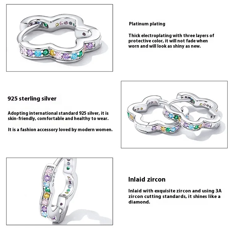 New Dense Inlaid Zircon Garland Ear Clip Sterling Silver