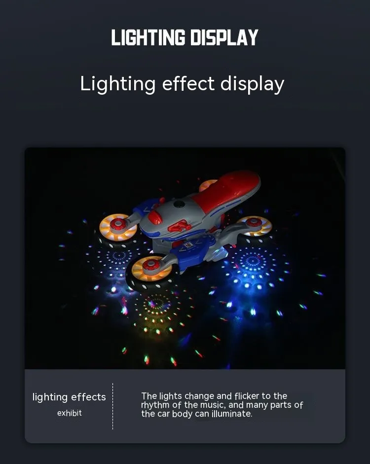 New Electric Deformation Motorcycle Stunt Rotating Universal Car Science Fiction Light Music Children Toy Car