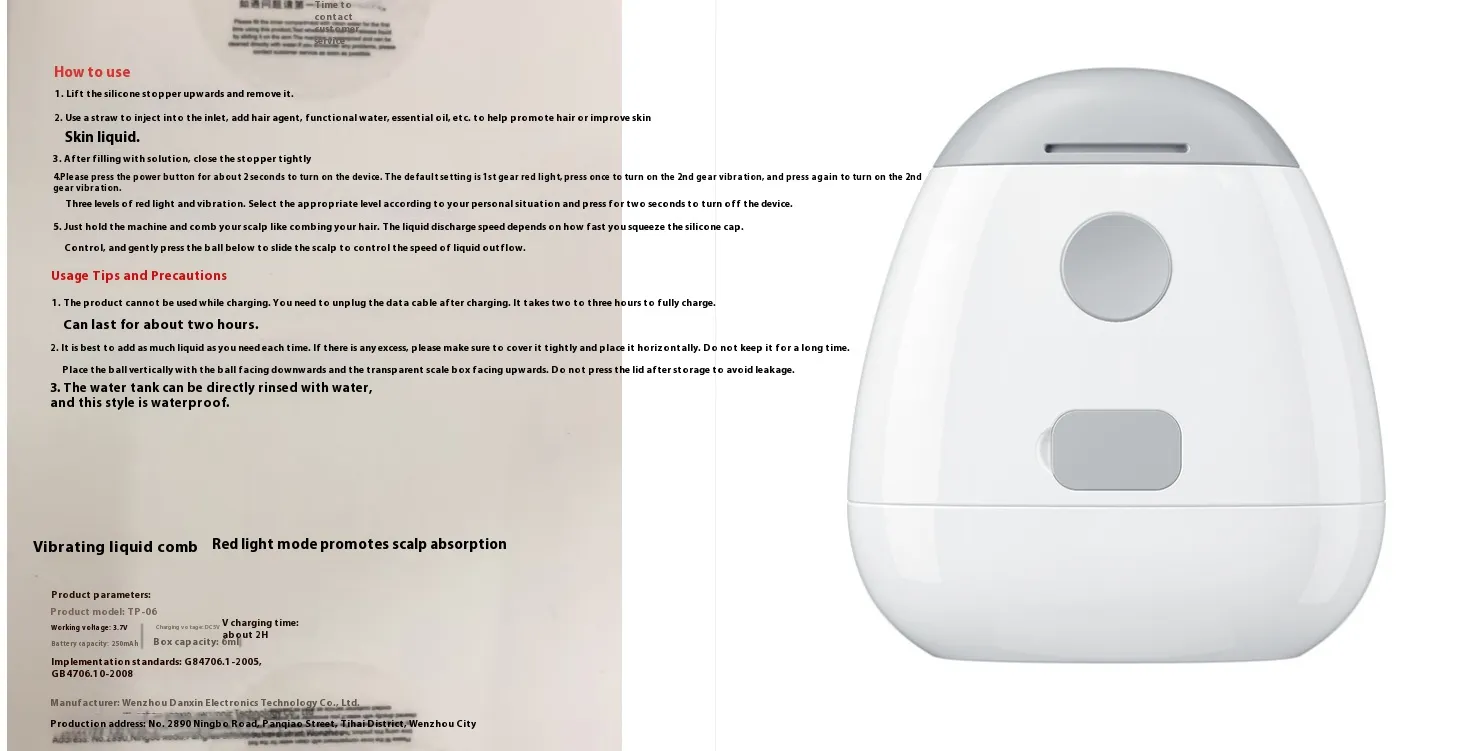 The New Electric Scalp Medicine Supplying Device with Red Light Vibration Massage is a revolutionary tool designed to rejuvenate your scalp and hair health. Combining advanced technology with therapeutic benefits, this device uses a combination of red light therapy and vibration massage to improve circulation, stimulate hair growth, and promote overall scalp wellness. Perfect for individuals looking to address hair thinning, dandruff, or simply to maintain a healthy scalp, this device offers a professional-grade solution at home.