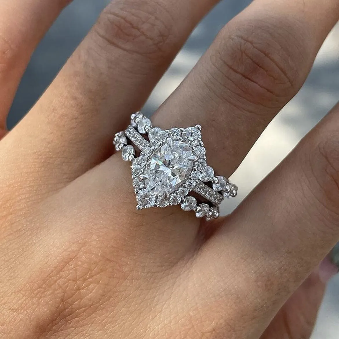 New European and American Fashion Jewelry Oval Zircon Women's Ring Set