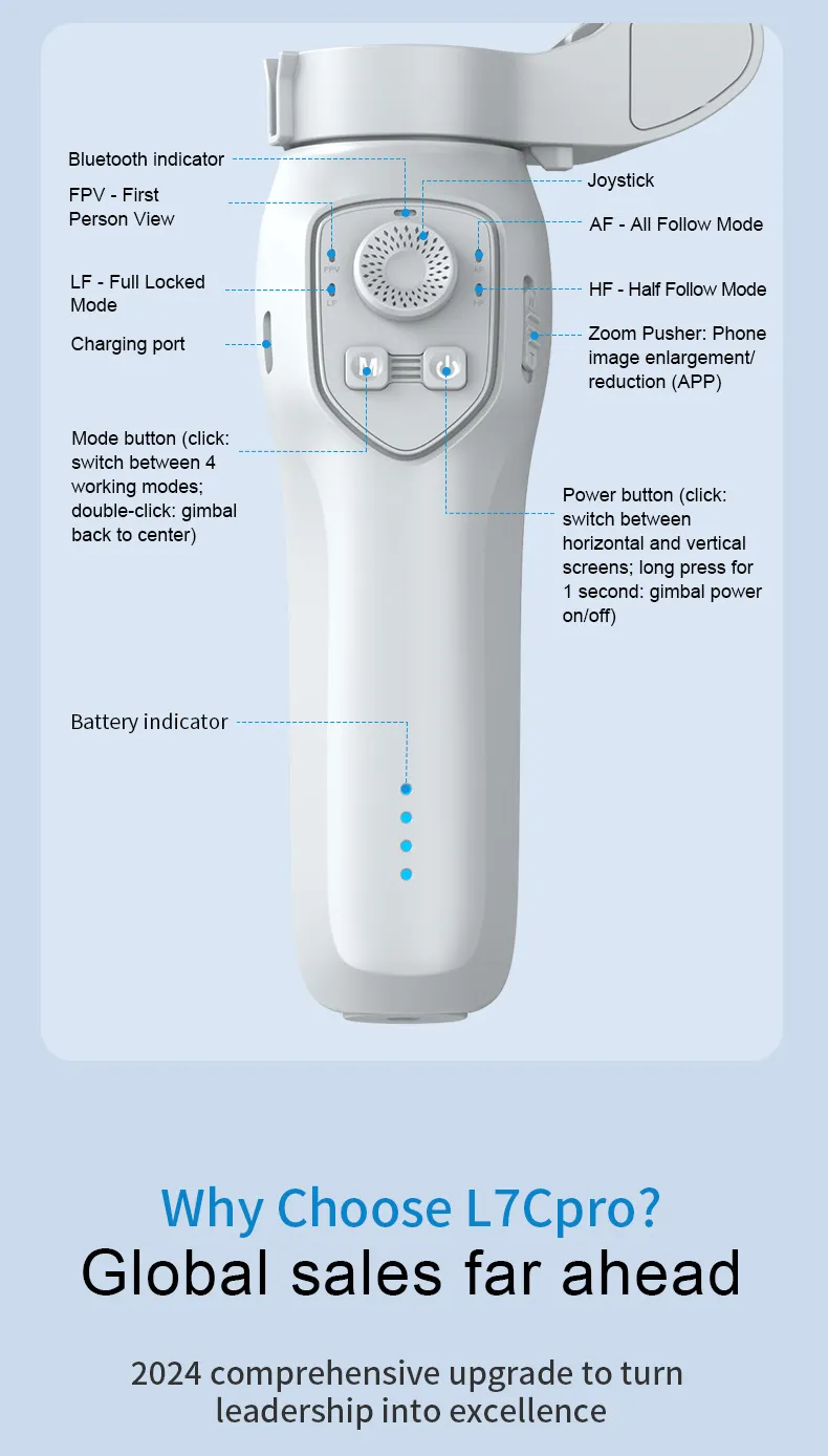 L7C Pro folding PTZ*1pc Type-C charging cable*1 Manual*1Â Product Image: