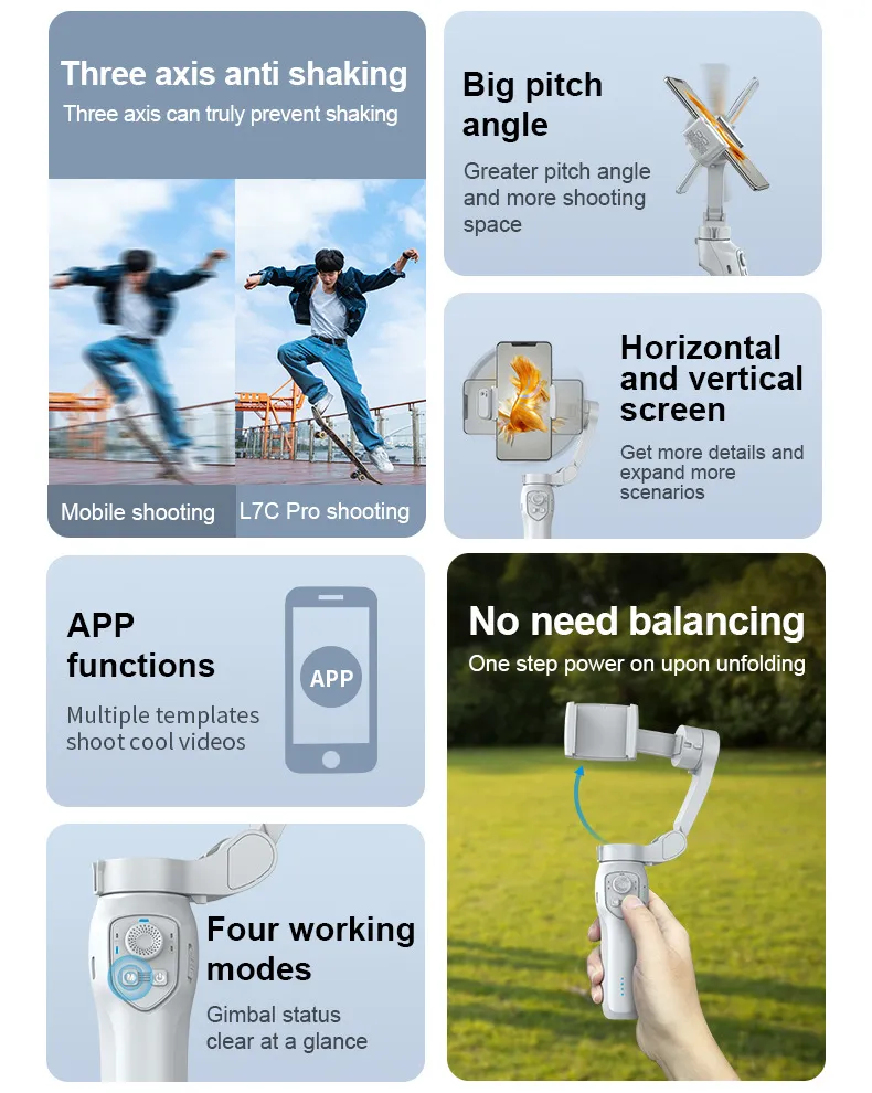 - Wide Compatibility: The New Foldable Handheld Stabilizer is compatible with a wide range of devices, including smartphones, GoPros, and other small cameras. Whether you're using an iPhone, Android, or an action camera, this stabilizer offers flexibility for all your filming needs.