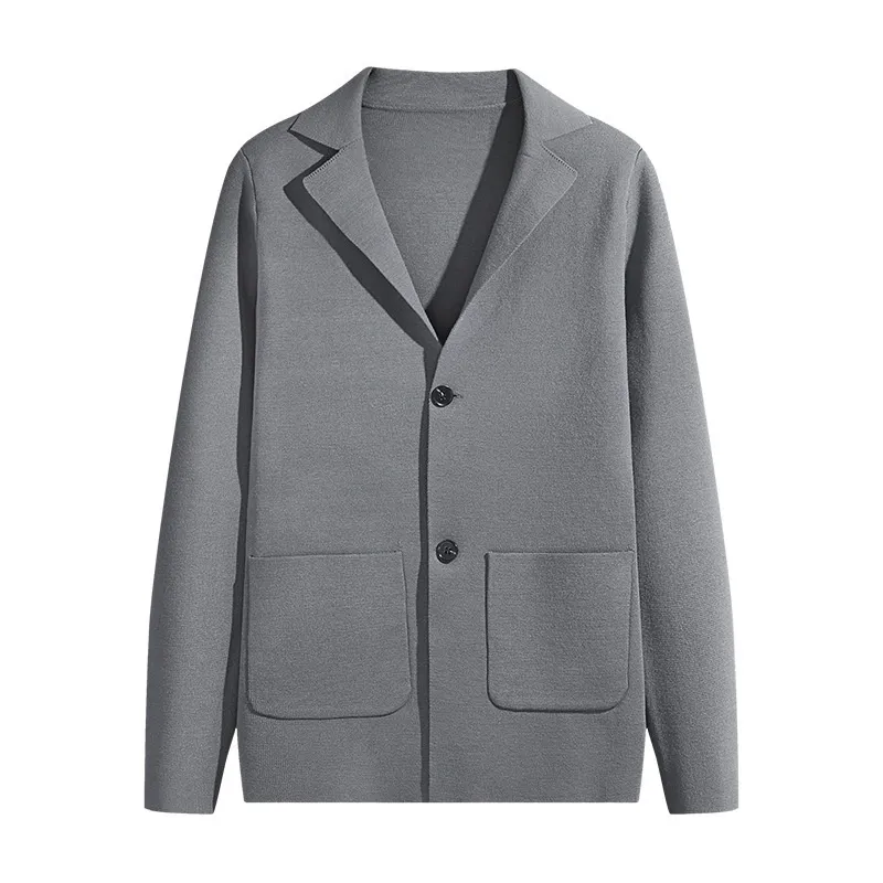 New Knitted Cardigan Men's Sweater Slim Fit Turn-down Collar Coat