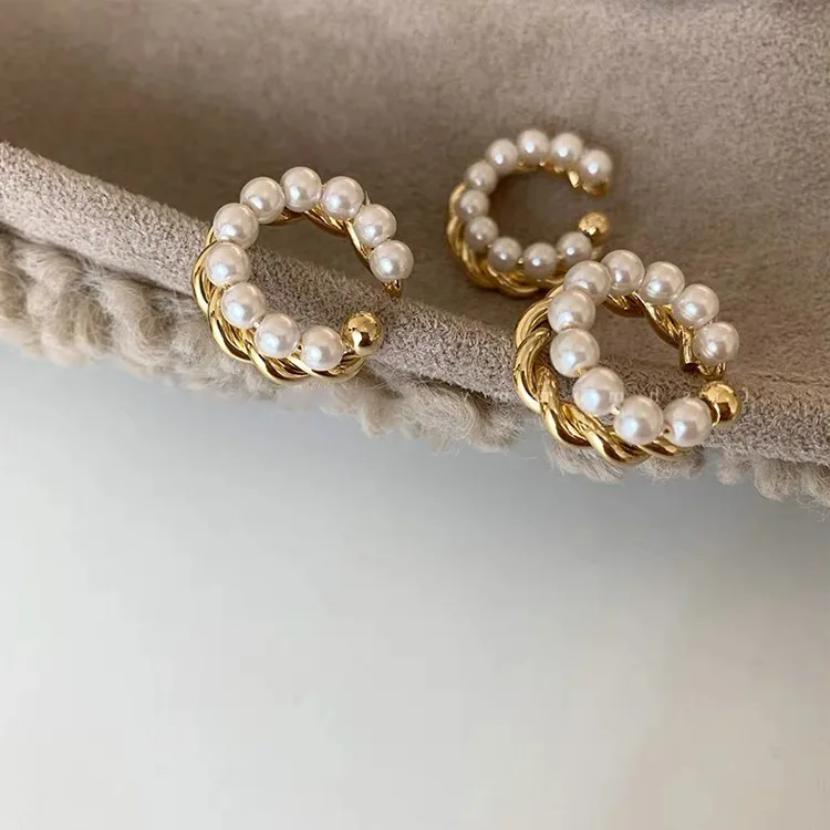 New Korean Gold Color Double Circle Twist Pearl Ear Cuff