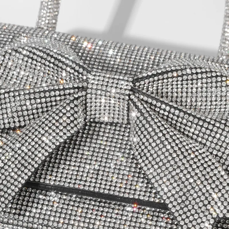 With its sparkling diamonds, luxurious design, and delicate bow detailing, this handbag is more than just a fashion accessory—it's a statement piece that showcases your refined taste and love for all things chic.