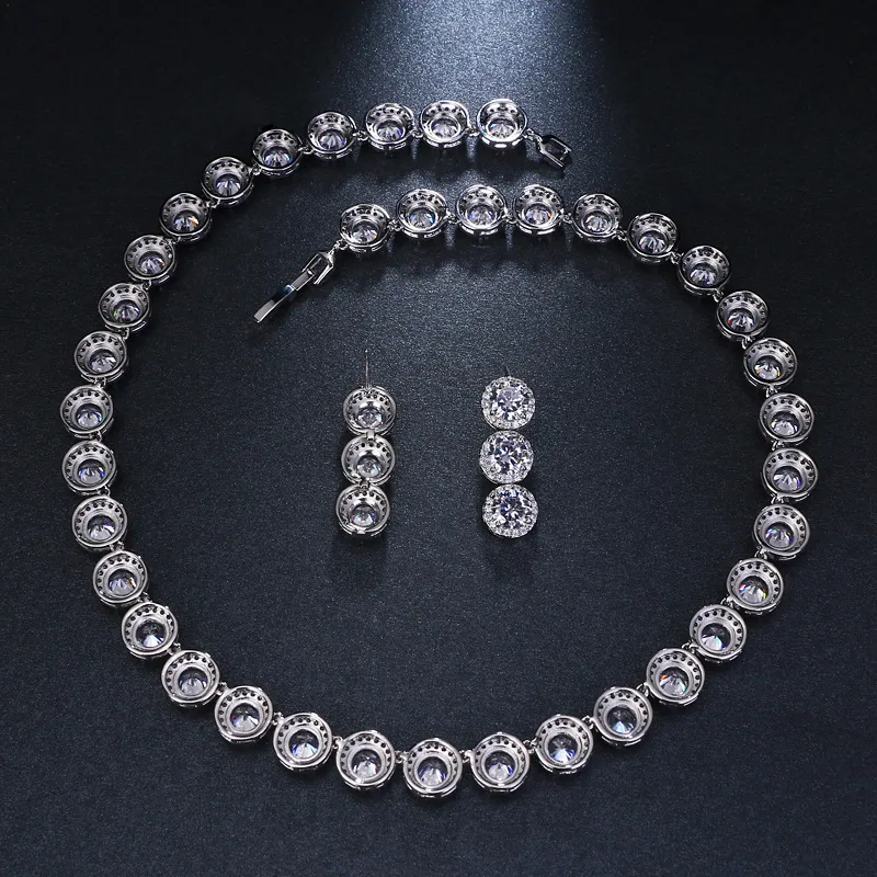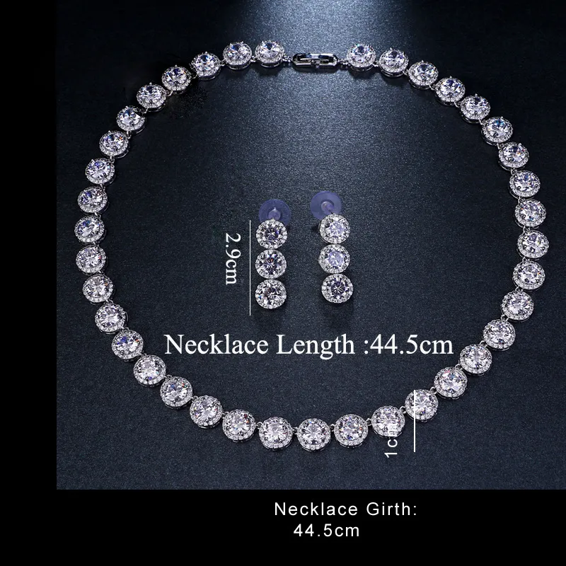 New Luxury Round Zircon Necklace Earrings Set
