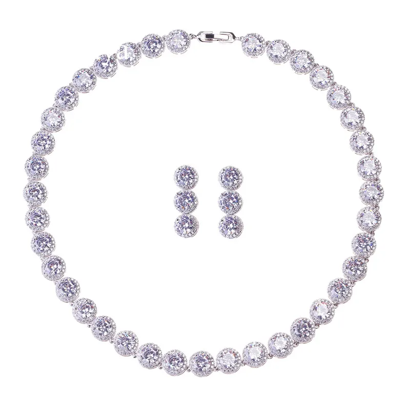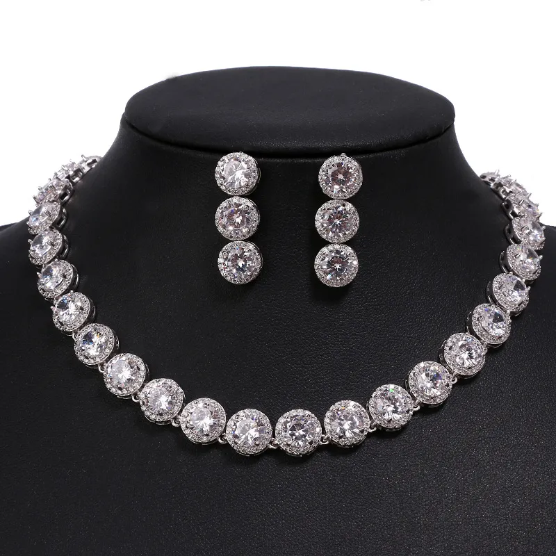 New Luxury Round Zircon Necklace Earrings Set