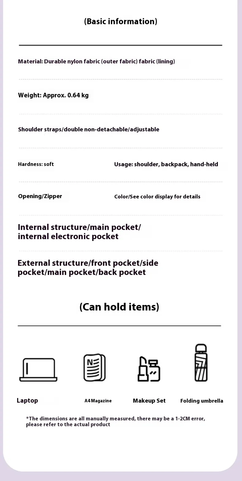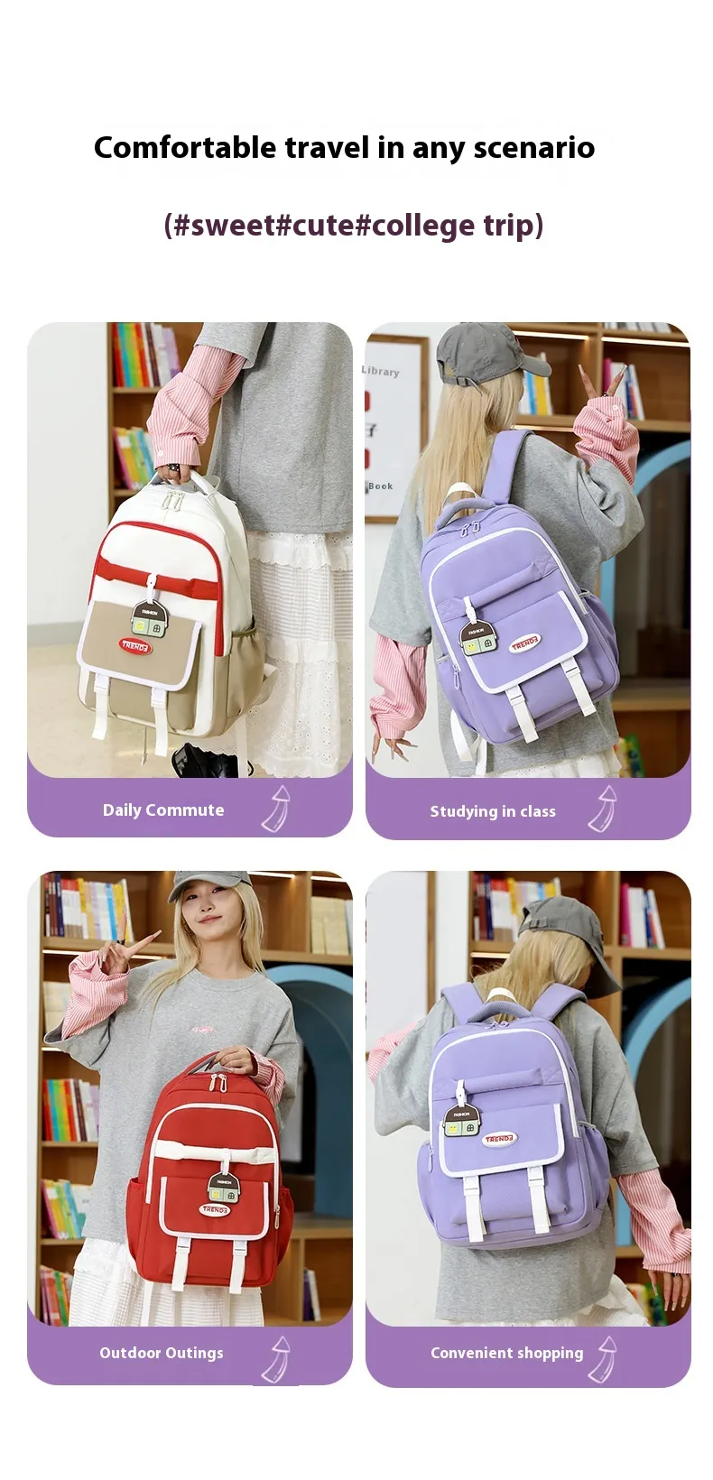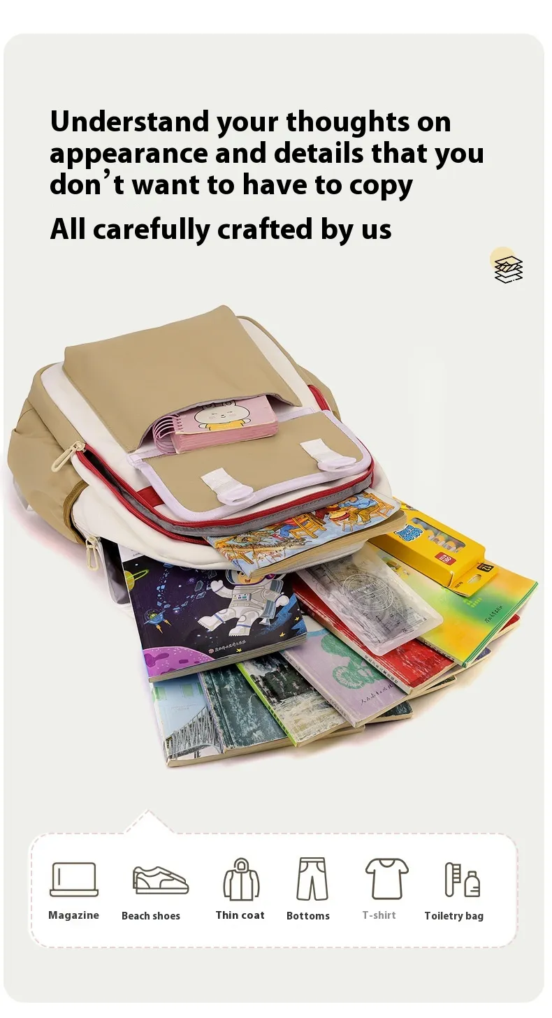 Key Features of New Preppy Style Girls Casual Multicolor Lightweight Double-shoulder Backpack