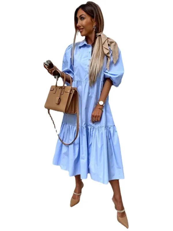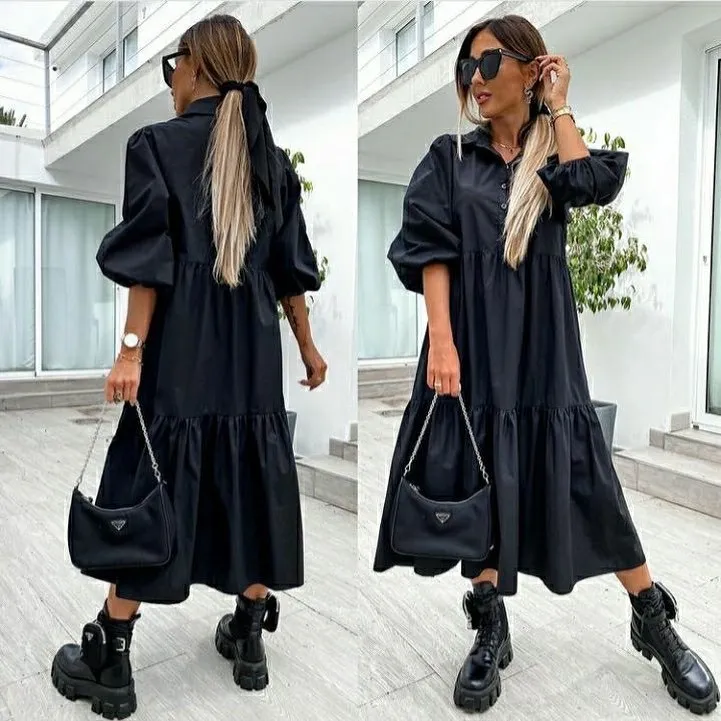 New Product Shirt Dress Lapel Large Size Loose Large Swing Dress
