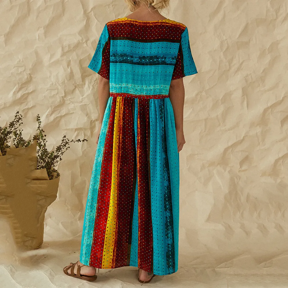 New Product Striped Stitching Large Size Loose Dress Women