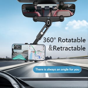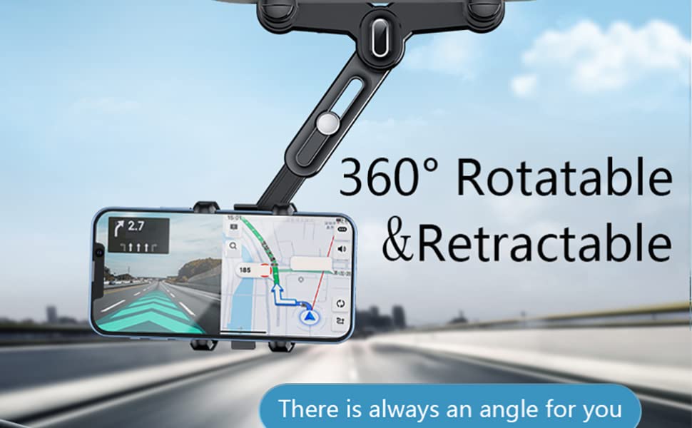 - 【Flexoble and Adjustable】New version multifunctional rearview mirror phone holder adopts a 360°rotating structure, Switch between horizontal and vertical screens at will. The arm length can be retractable by 0~3.14inch,you can swivel the mount to any angle so that you can get the best viewing angle.