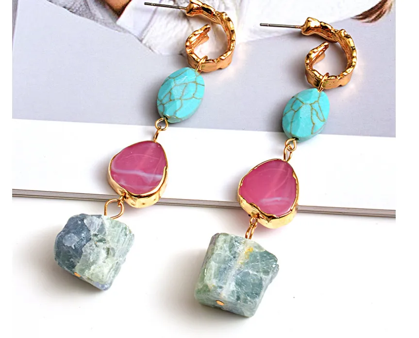 Key Features of the New Style Earrings European and American Style Long Stone Earrings
