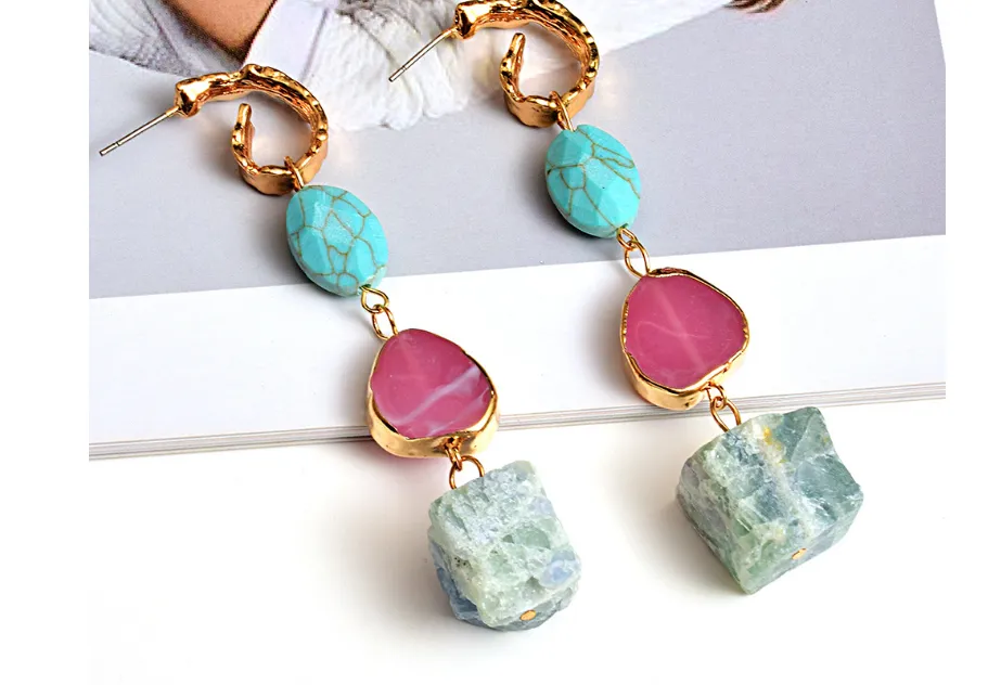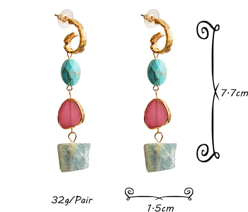Key Features of the New Style Earrings European and American Style Long Stone Earrings
