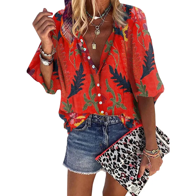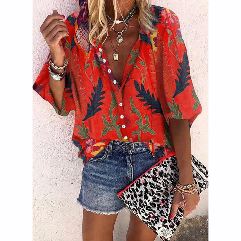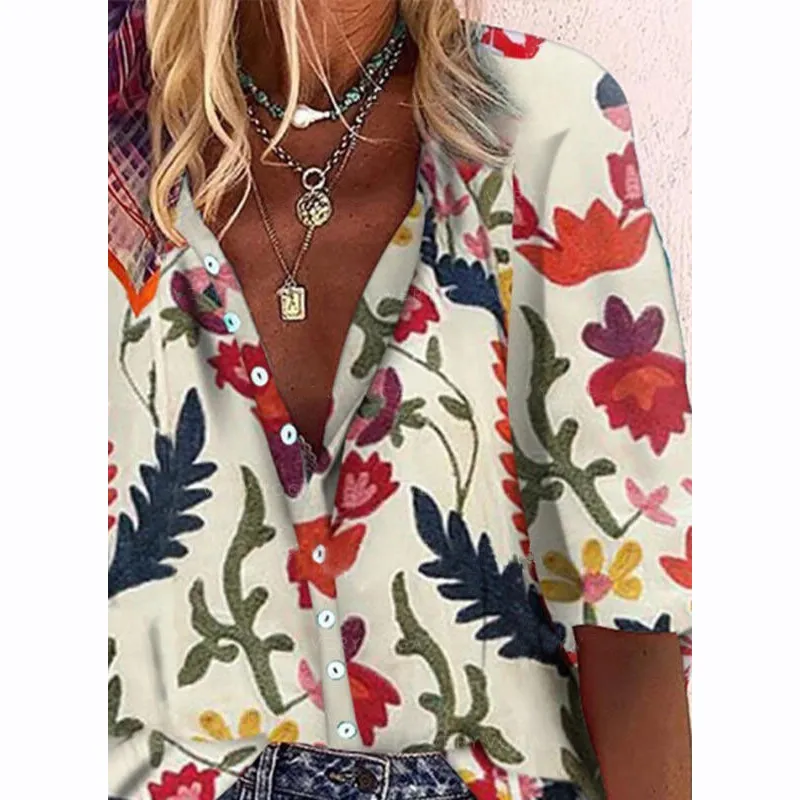 New Style Printed Stand Up Collar Long Sleeved Casual Women's Shirt