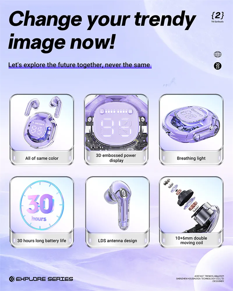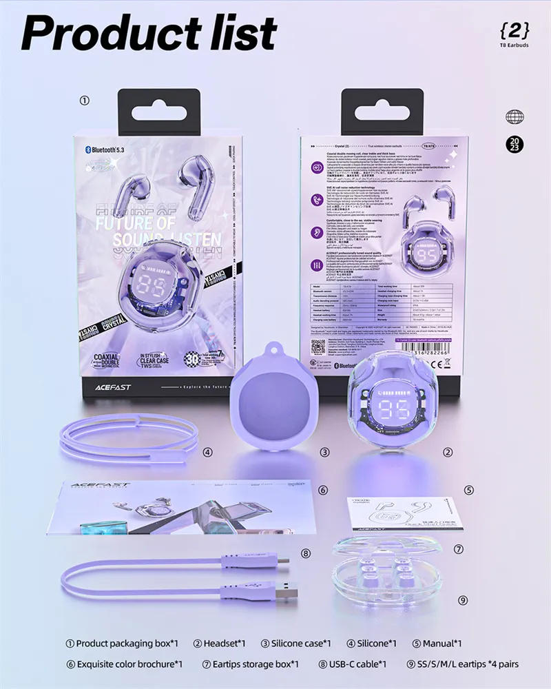 Bluetooth pairing name: ACEFAST Crystal(2)T8