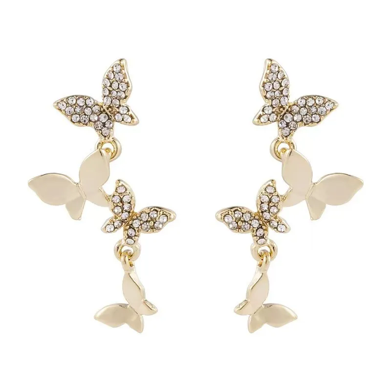 Featuring four intricately designed butterflies, these earrings symbolize grace, freedom, and natural beauty, creating a visually stunning accessory for any outfit.