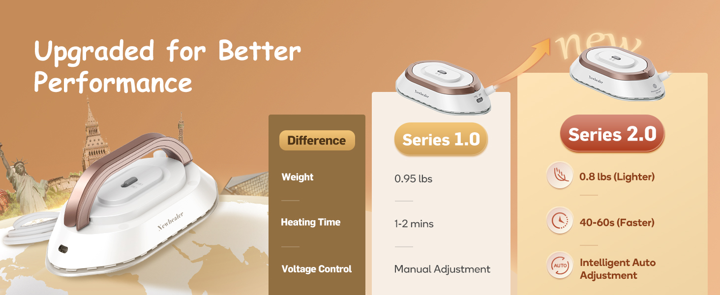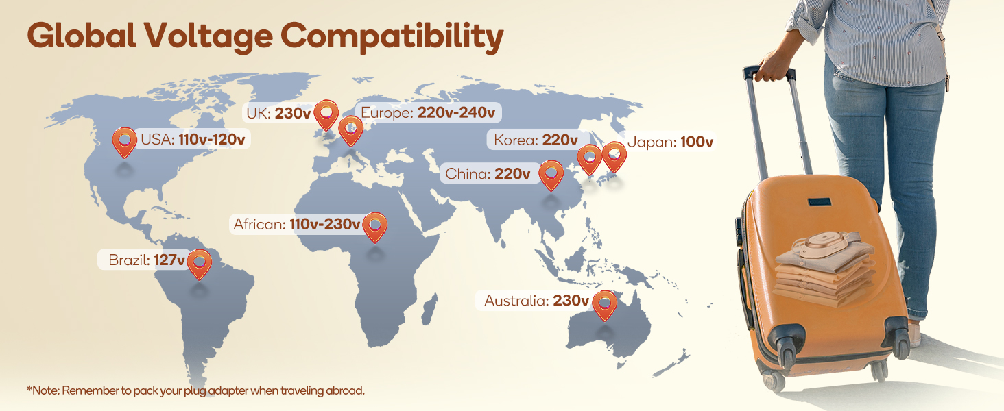 North America, the Newbealer Travel Iron adapts to various power standards, eliminating the need for multiple devices.