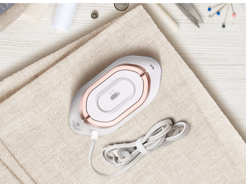 The portable travel iron adopts Diamond Coated ceramic soleplate, which conducts heat quickly and more scratch-resistant than stainless steel plates. Easy cleaning smooth surface, glides effortlessly over delicate fabrics. The front and back double pointed arc design is helpful for ironing small areas such as buttons, plackets, collars, etc.