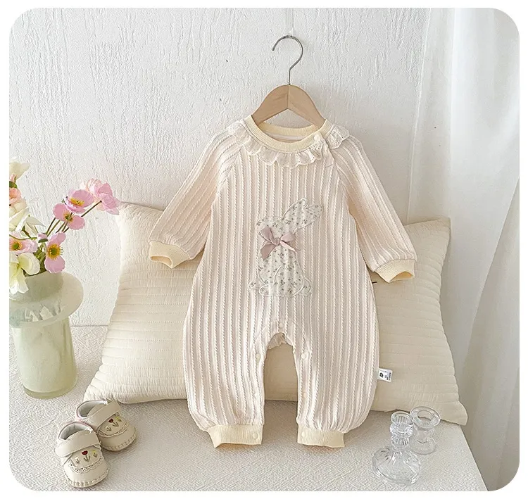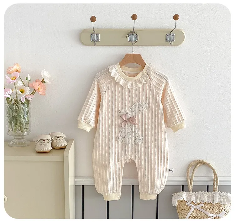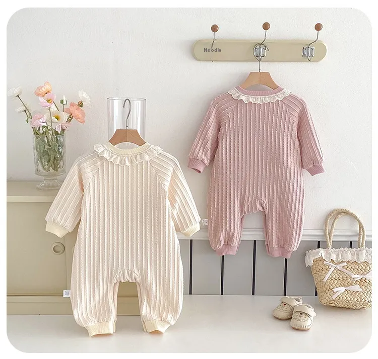 The Newborn Baby Lace Collar Long Sleeve Romper features long sleeves, providing extra warmth and comfort during cooler months. The soft, breathable fabric ensures that your baby stays cozy without feeling too hot, making this romper versatile enough for both chilly and moderate temperatures. The long sleeve design also makes it ideal for layering with jackets or cardigans when necessary.