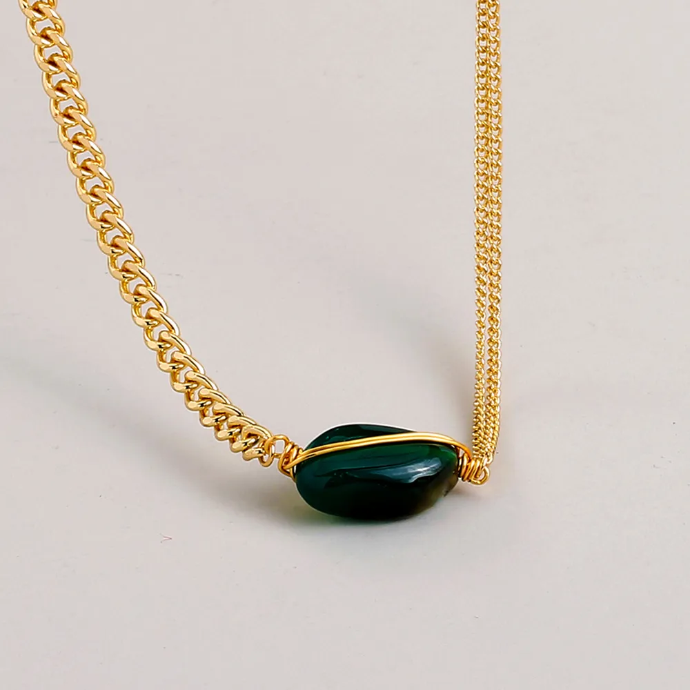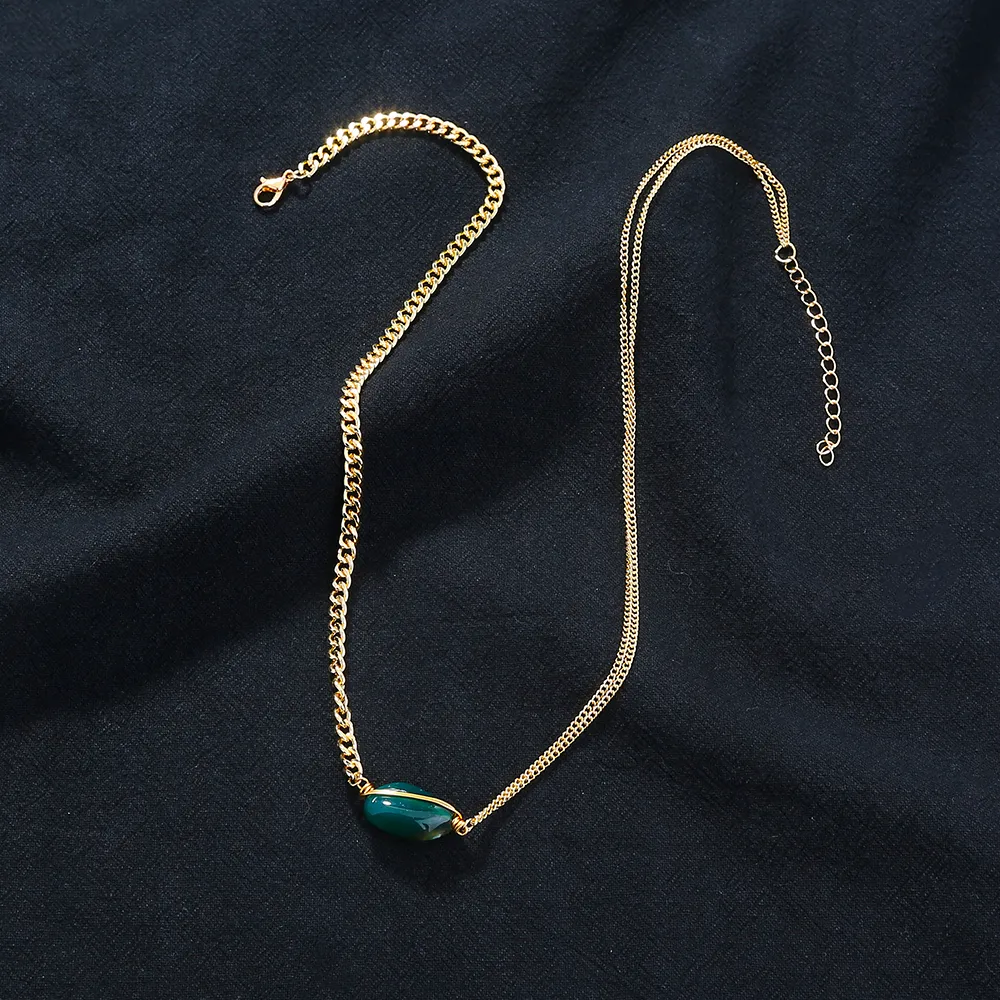 The green stones are often associated with growth, healing, and balance, making this necklace not only a stylish accessory but also a meaningful piece that promotes harmony and well-being.