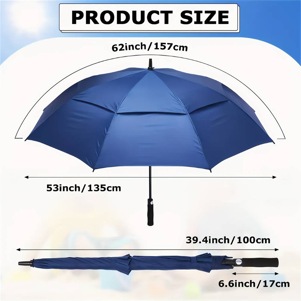 The NINEMAX Oversized Double-Layer Golf Umbrella is the ultimate combination of style, functionality, and durability. Designed with a 157.48cm diameter, this umbrella provides wide coverage and is built to withstand the elements, making it perfect for golf, outdoor events, or everyday use. Featuring an 8-rib glass fiber frame, double canopy vented design, and automatic open feature, this umbrella ensures you stay dry, protected from the sun, and shielded from strong winds.