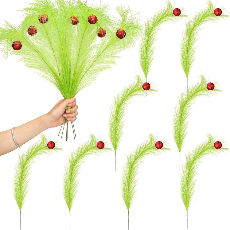 The NLDD 12pcs Artificial Christmas Tree Stem Set features vibrant lime-green furry pampas-style stems accented with red berries for a bold, festive holiday look. Perfect for NZ homes wanting colourful, modern Christmas décor, these stems enhance trees, wreaths, garlands, floral arrangements, centerpieces, vases, and holiday crafts.