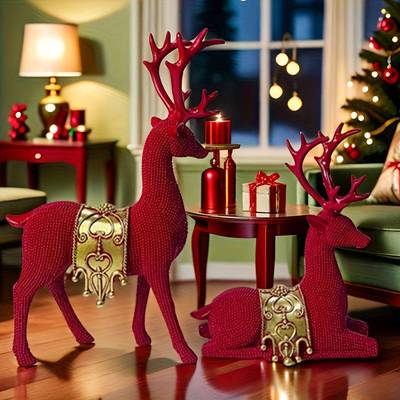 The NLDD Exquisite Deer Resin Craft Set includes a beautifully detailed pair of large resin deer statues with elegant beaded accents. Designed for luxurious home decoration, these statues bring sophistication, charm, and festive beauty to entryways, living rooms, wine cabinets, and office spaces.