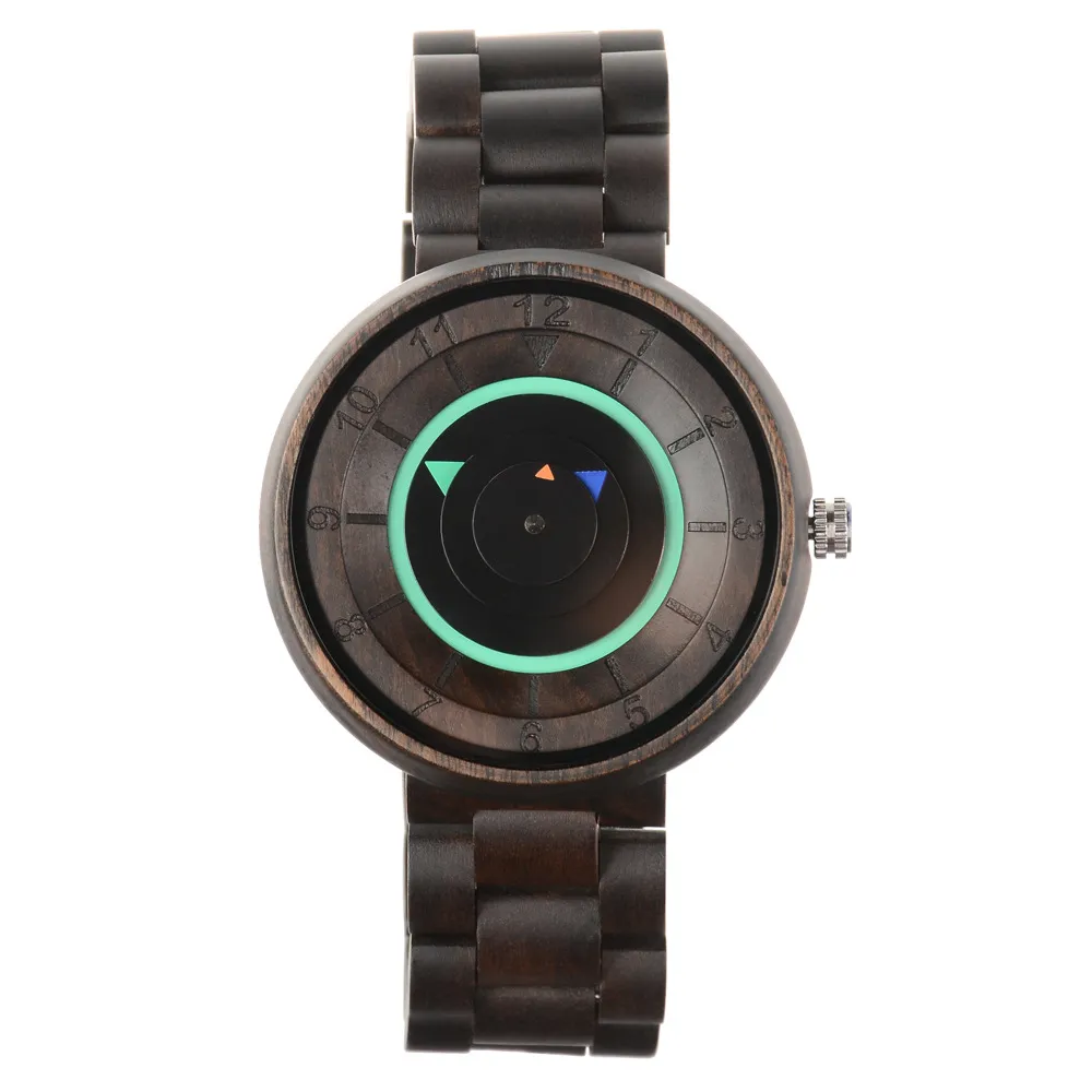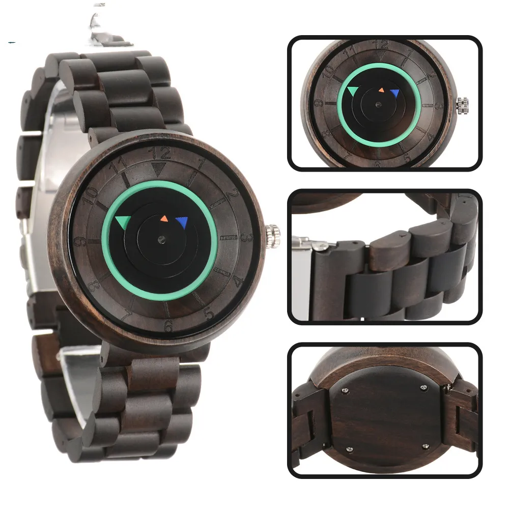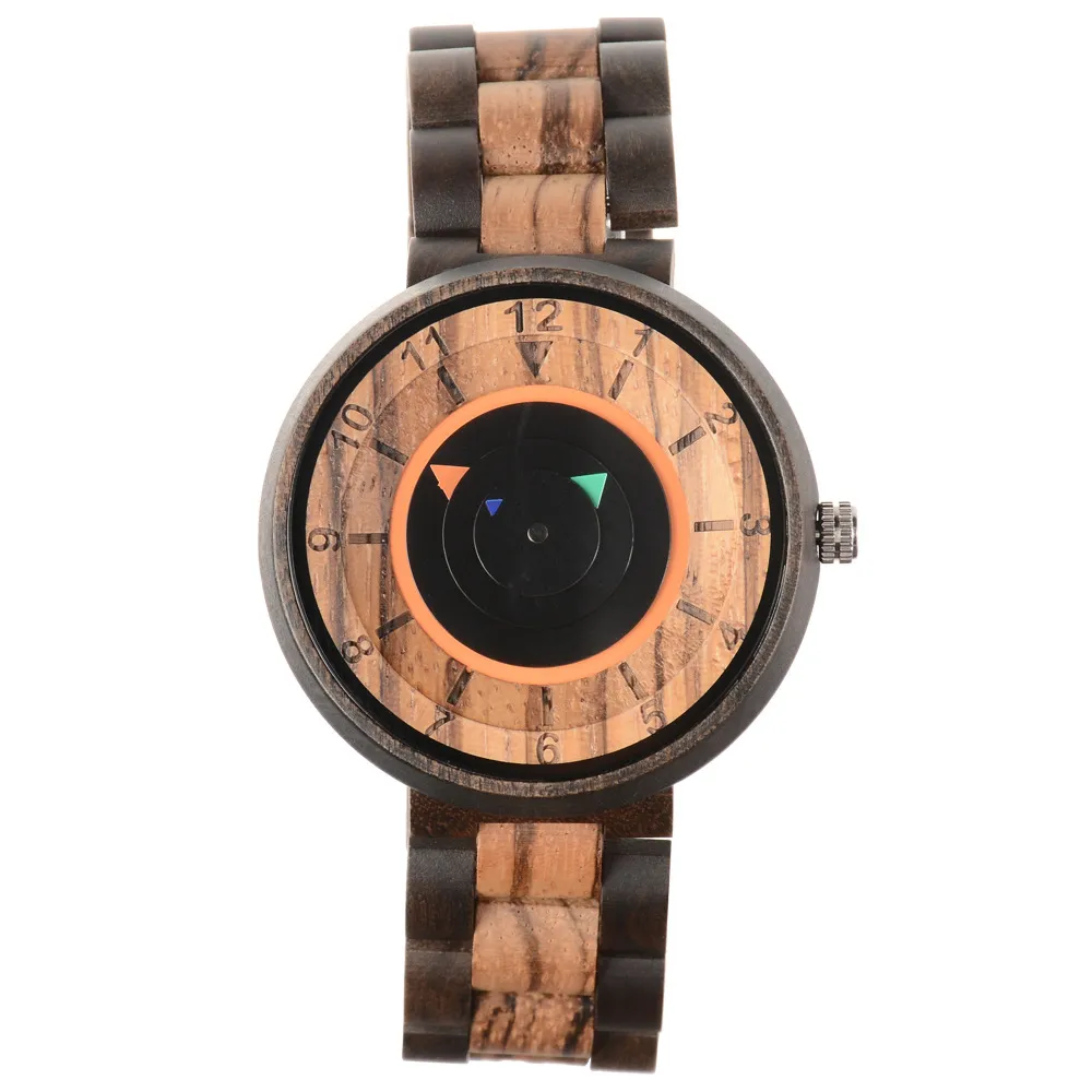 The No Pointer Concept Quartz Watch is a unique and innovative timepiece designed for individuals who want to make a bold statement with their accessories. This casual and personality-driven watch features a wooden design that blends nature with modern design elements. Unlike traditional watches, this watch takes a minimalist approach with a no-pointer concept, offering an abstract yet functional display of time. The quartz movement ensures precision, while the wooden case adds a natural, eco-friendly touch. This watch is perfect for those who appreciate artistic craftsmanship, sustainability, and unique fashion.