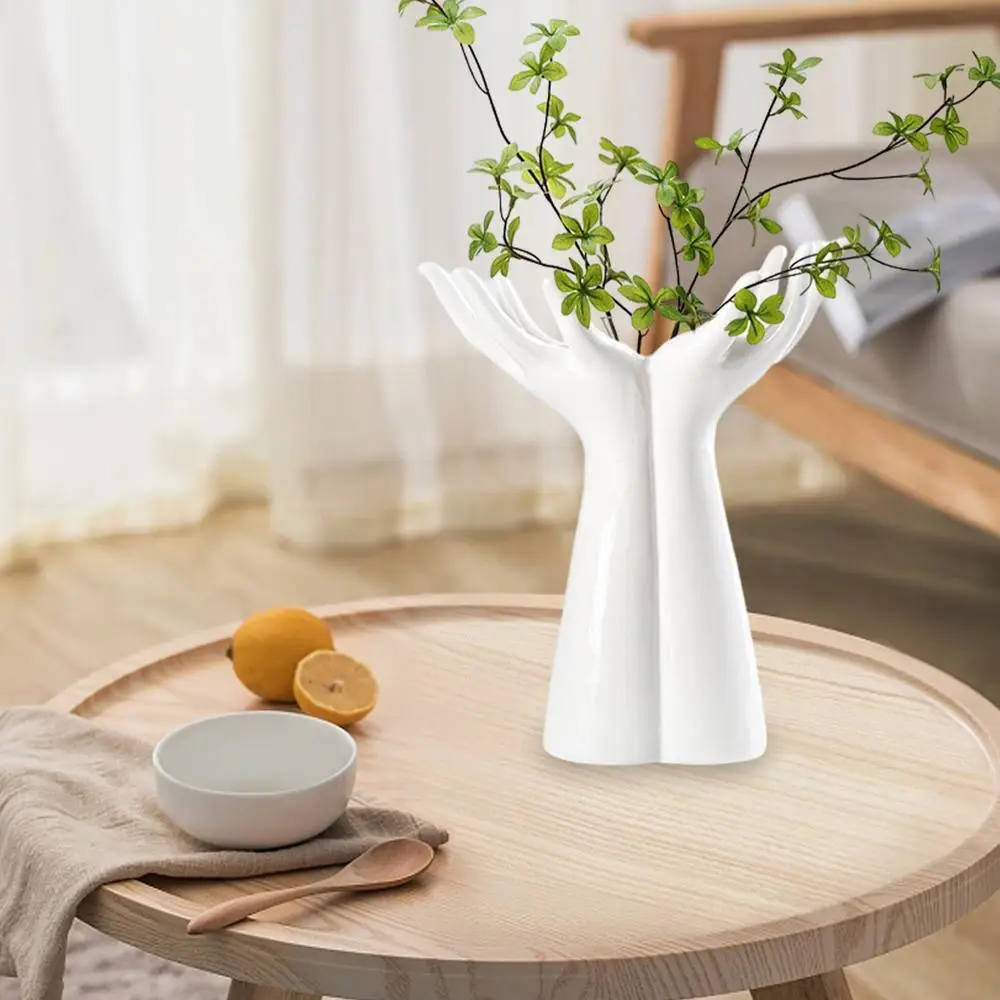 Nordic Style Ceramic Hand Vase - Modern Creative Flower Arrangement Vase for Home, Office, Desktop, and Living Room Decor