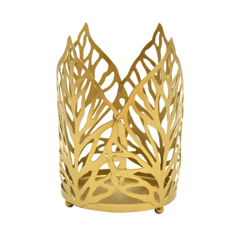 Nordic Wrought Iron Gold Old Hollow Leaf Candle Holder Home Decoration Candle Holder
