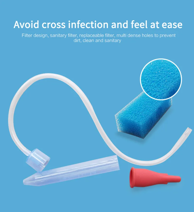 The device consists of a soft, flexible tube placed at the baby’s nostril and a mouthpiece the parent gently sucks on to create suction. It’s simple, effective, and non-invasive.