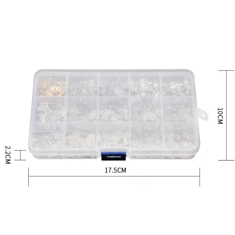 Including: 15 types of lock type, card type, core insert type pvc nose pads each 10 pairs, a box set a total of 150 pairs, 300.