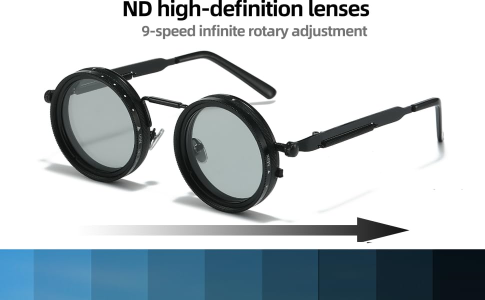 - Innovative Adjustable ND Lenses: Our sunglasses feature cutting-edge ND filter lenses, allowing you to smoothly adjust the lens darkness with precision. Perfect for adapting to varying light conditions, whether you're driving, hiking, or just out in the sun.