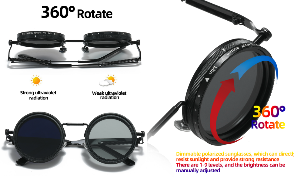 SEE FOR YOURSELF✅ Dimmable polarized lenses with 1-9 speed manual adjustment, allowing you to adjust the brightness in different lighting conditions, plus a 360-degree rotating design!✅ High-precision ND high-definition lenses, blocking 99% of UV rays to protect your eyes!