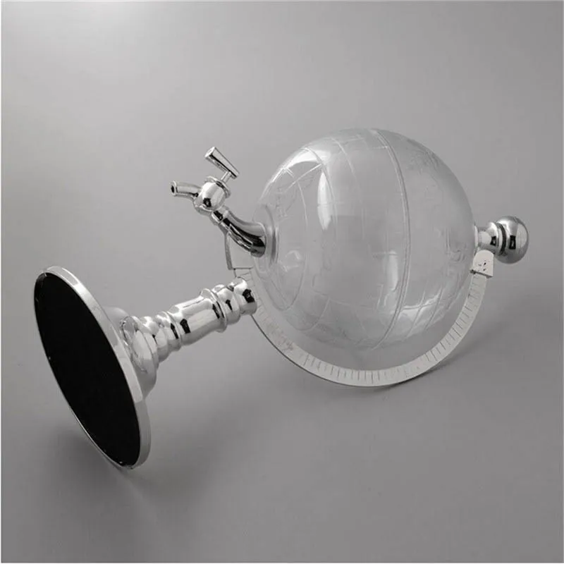 This globe wine decanter holds up to 1.5 liters of your favorite spirits or beverages, making it perfect for entertaining guests or playing fun drinking games. The unique design not only serves as a functional drink dispenser but also doubles as a conversation starter and a decorative piece for your bar or kitchen. Whether filled with whiskey, vodka, wine, or beer, this dispenser is sure to impress. Its sturdy base ensures stability during use, and the rotating globe adds an interactive element to your drink-pouring experience.