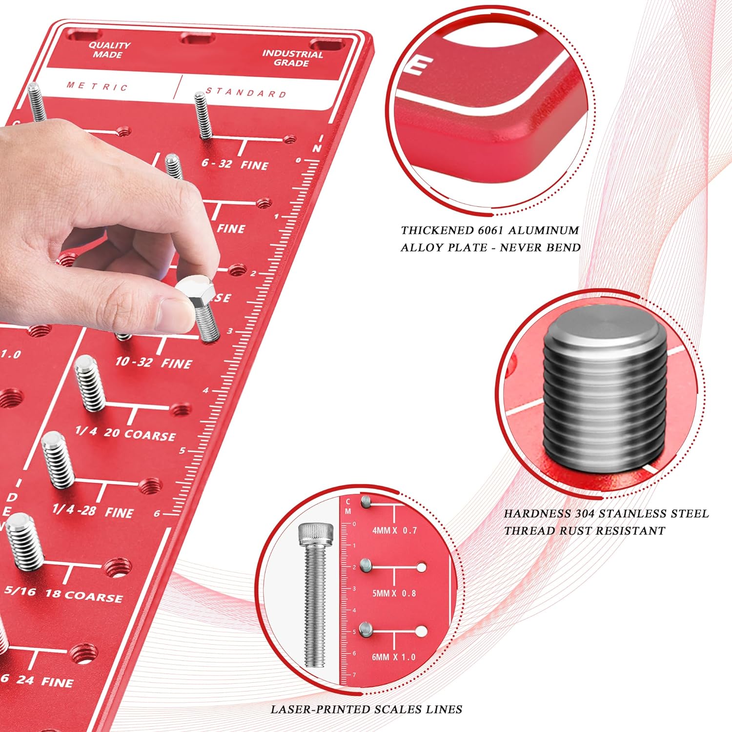 【STRONG AND PORTABLE 】-Thread Checker is crafted from lightweight 6061 aluminum, featuring enduring, easy-to-read laser-etched markings. Its sturdy design allows you to take it to different workplaces effortlessly.