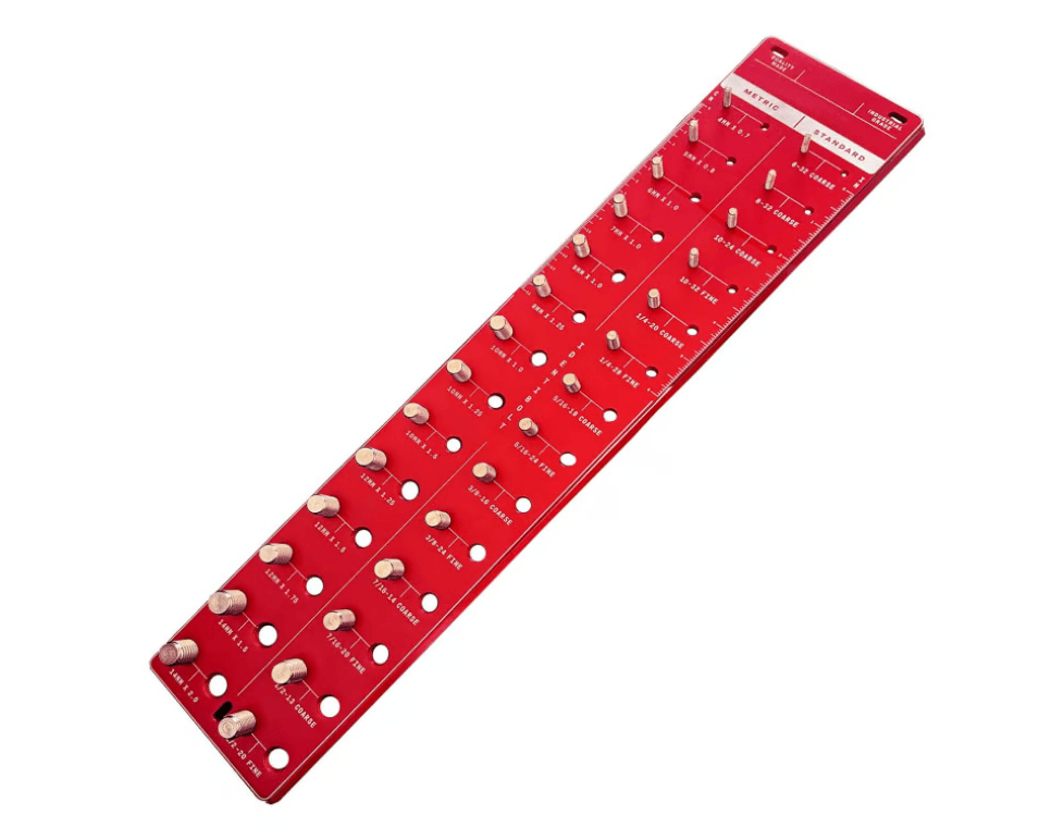 The tool includes a wide range of metric and imperial sizes, covering most common thread sizes used in various industries.