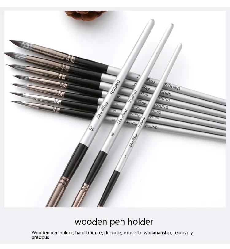 The Nylon Hair Brush Silver Gray Rod Round Front Watercolor Oil Painting Set Hook Line Pen Soft is a premium set of brushes designed for artists who seek precision and versatility in their painting tools. Whether you're working with watercolors, oil paints, or acrylics, these brushes offer exceptional performance and durability. The silver-gray rods provide a sleek and professional look, while the soft nylon bristles ensure smooth application and fine detail work.