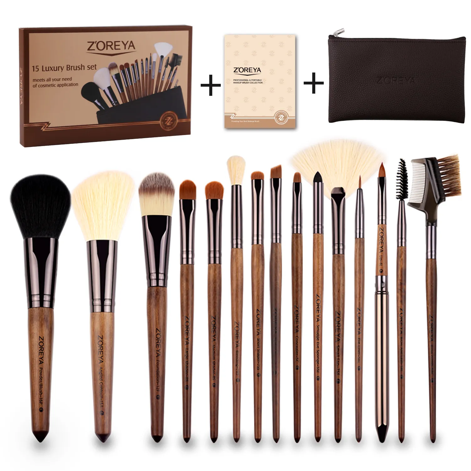 - Eye Brushes: Eyeshadow brushes (flat, blending, and precision), eyeliner brush, and eyebrow brush.