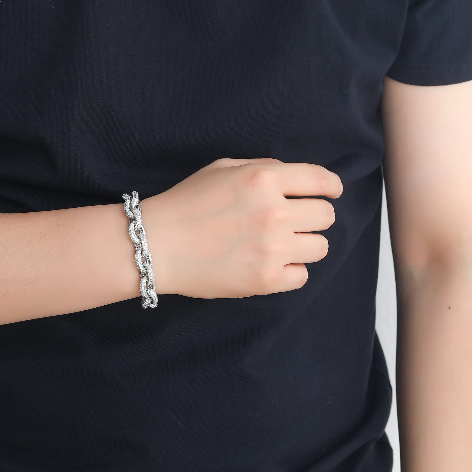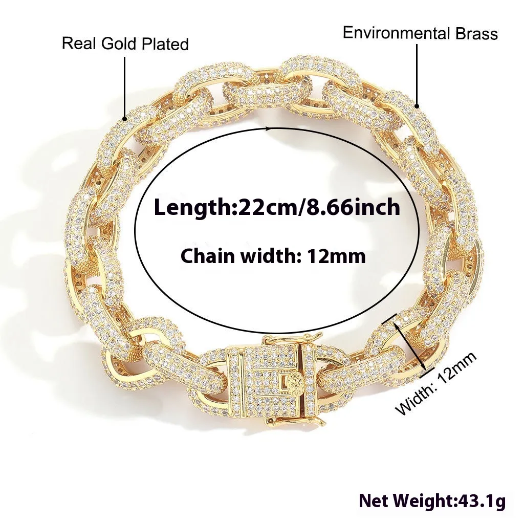 O-shaped Chain 12mm Inlaid Zircon Men's Bracelet
