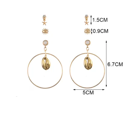 In conclusion, the Ocean Starfish Big Circle Shell Earrings Beach Natural Eyes Gold Plated Bell Pendant 3 Pairs Set Stud Earrings is a must-have for anyone who loves nature-inspired jewelry. With its charming beach motifs, gold-plated finish, and versatile set of three pairs, this jewelry set brings together elegance and coastal charm in a way that is both stylish and functional. Whether you're dressing up for a beach day or adding a unique flair to a casual evening look, these earrings will become your go-to accessory for any occasion.