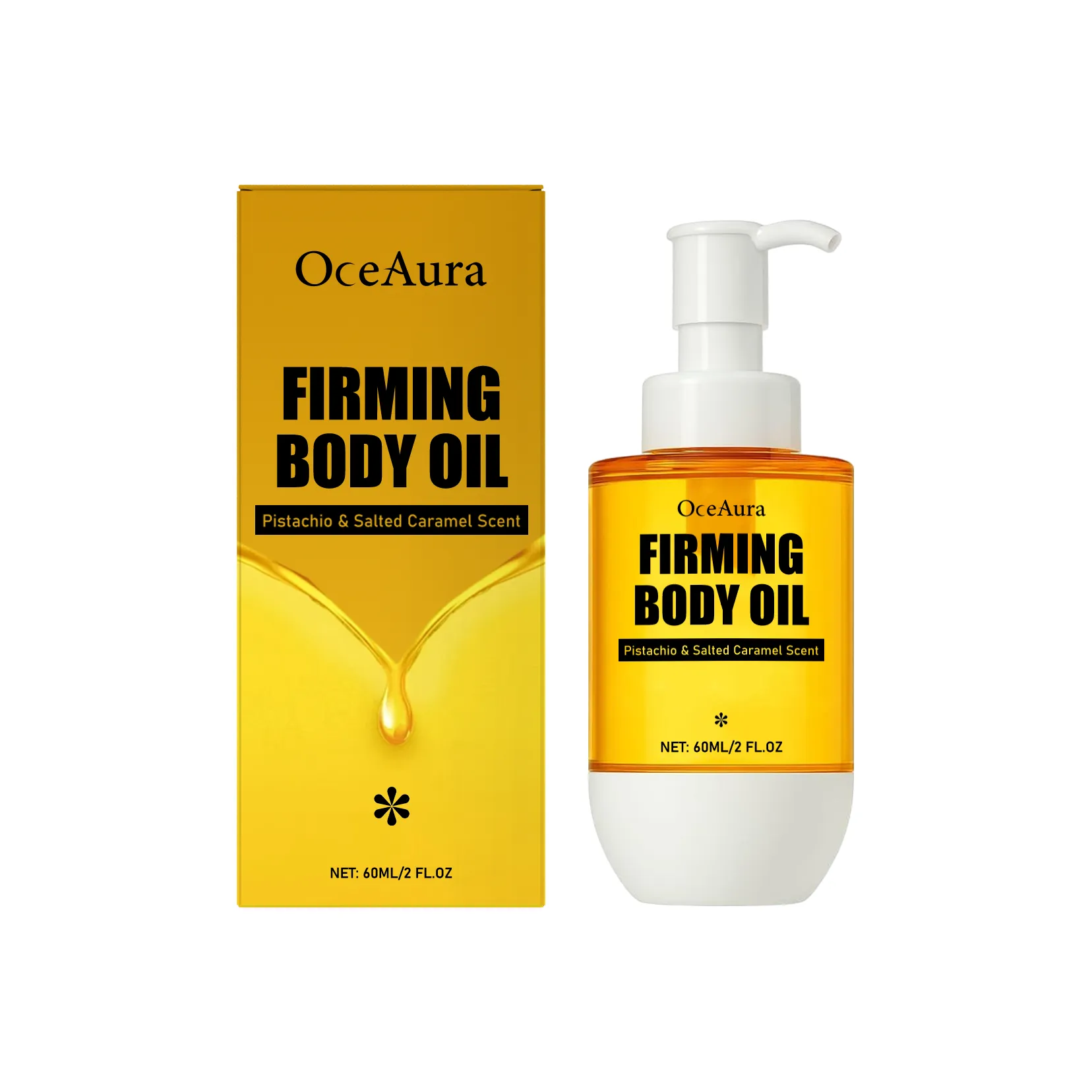 Meta Tag Description: OceAura Firming Body Oil hydrates, firms, and nourishes skin with a pistachio & salted caramel scent, leaving your skin soft and smooth with a non-greasy finish.