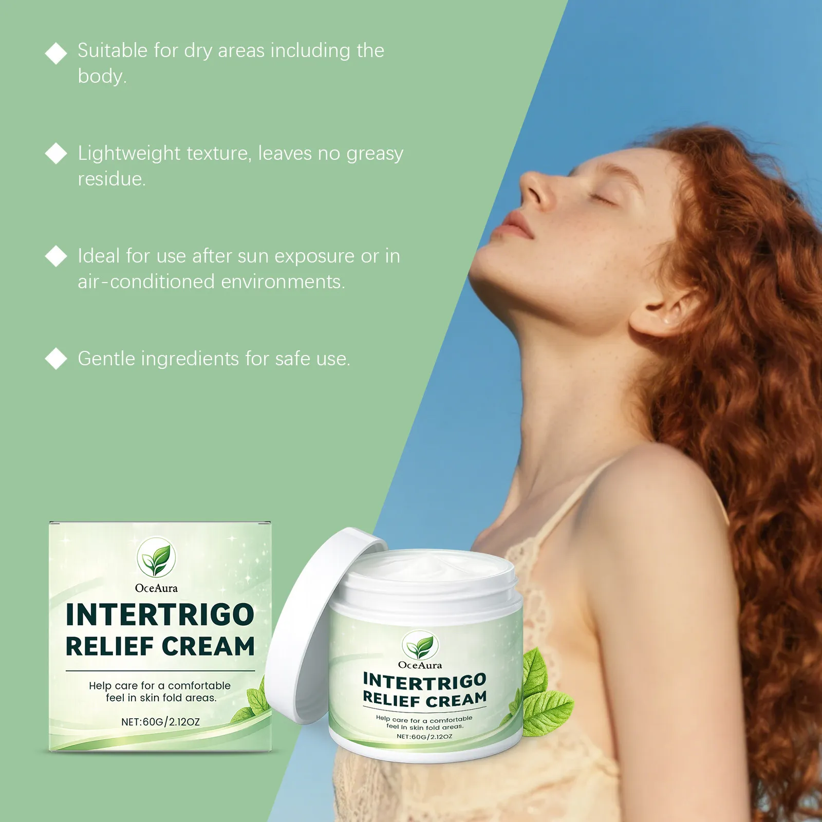 OceAura is dedicated to providing products that restore comfort and hydration to sensitive skin. The Intertrigo Relief Cream