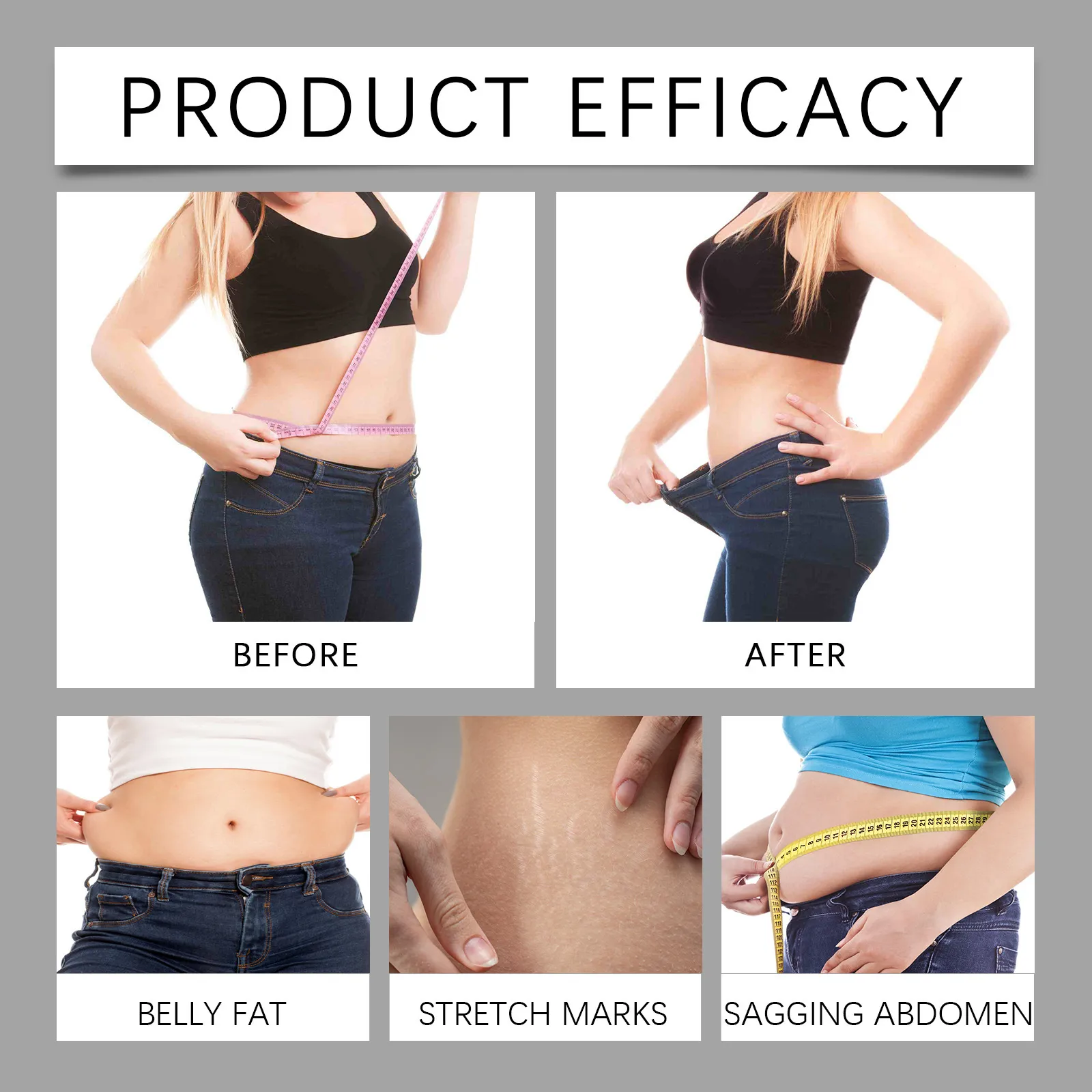 These ingredients combine to improve skin elasticity, stimulate circulation, and provide the skin with essential moisture, leaving the waistline area firmer and more toned.