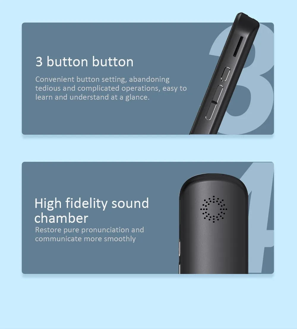 The device comes with a rechargeable battery that lasts for hours on a single charge, ensuring that it can support long translations on-the-go without the need to recharge frequently.