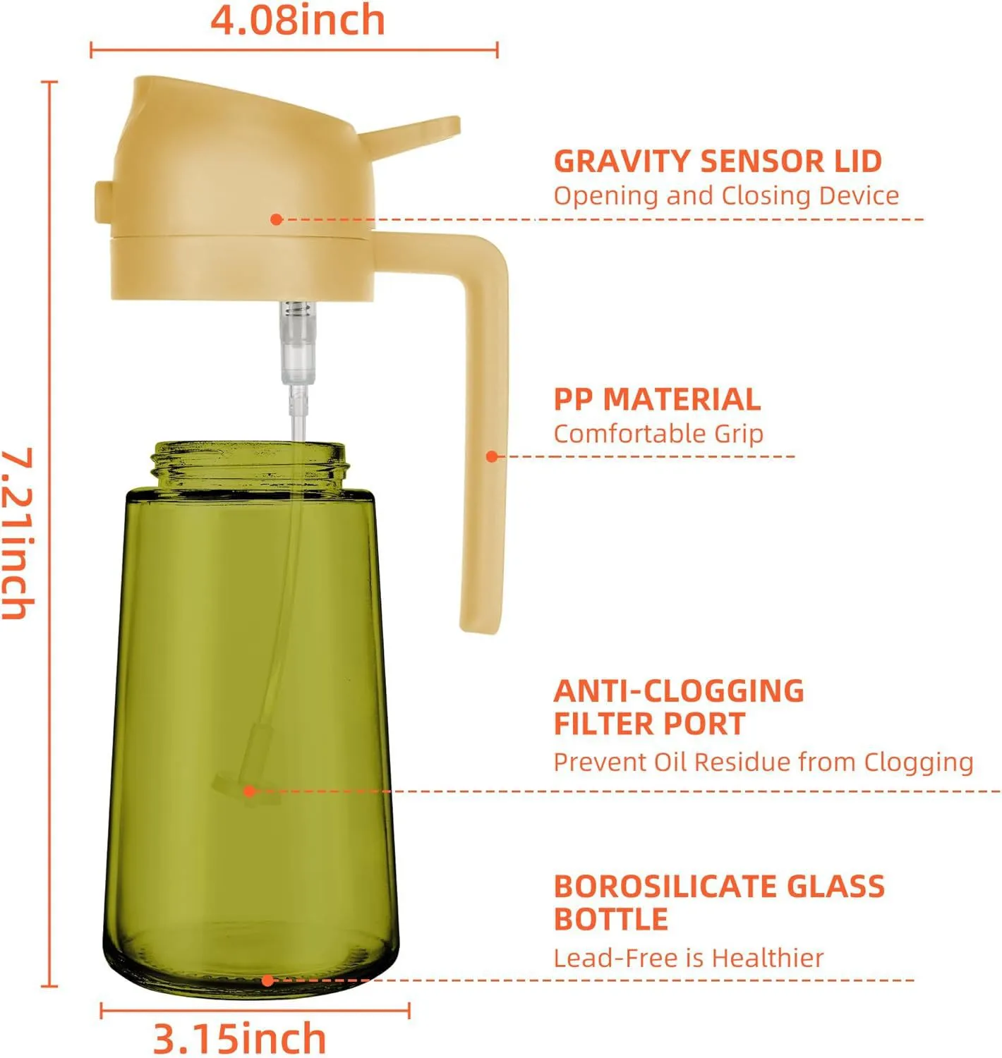 Remove the dispenser cap and pour your cooking oil—such as olive oil, vegetable oil, or infused oils—into the container. Avoid overfilling to prevent spills.